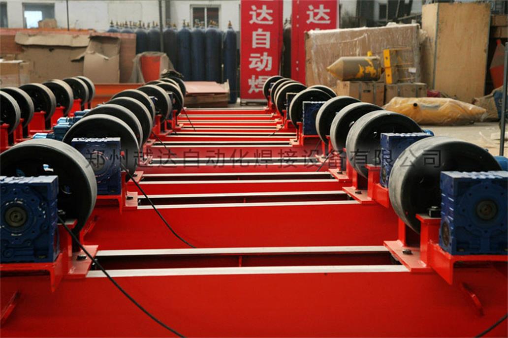 焊接滚轮架是我公司适应大吨位筒体环缝焊接而研制的焊接辅机设备.采用双减速箱,双电机驱动.驱动力大.采用进口变频调速器,性能可靠.一般情况下可调式滚轮架的中心距,2吨以下采用丝杠调节,5吨以上采用螺栓分档调节.还可根据客户要求设计特殊的滚轮架.