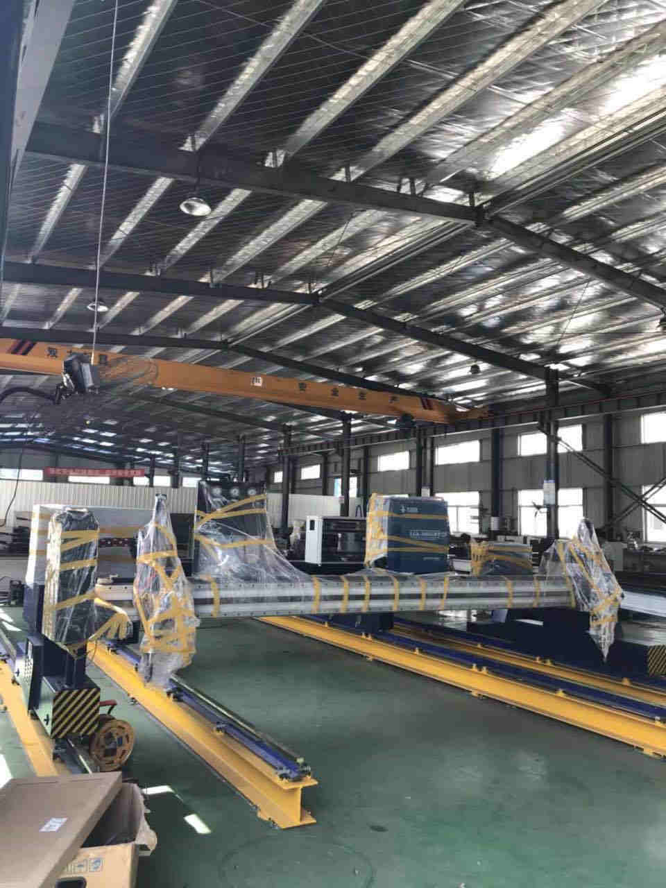 机床台车由钢板及型钢组焊而成,经整体淬火消除应力。台车与横梁的结合面及下平面严格按技术要求经机床加工,保证横梁与台车装配的90度角,确保机床的切割精度。